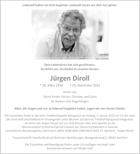 | † | Mittwoch, | 05. | 01. | 2022 |
