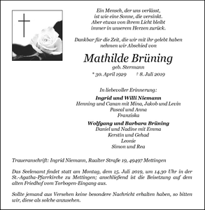 | † | Mittwoch, | 10. | 07. | 2019 |