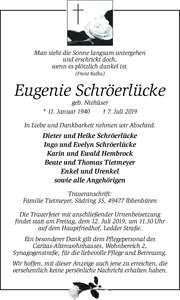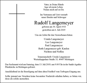 | † | Mittwoch, | 03. | 07. | 2019 |