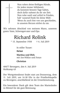 | † | Mittwoch, | 03. | 07. | 2019 |