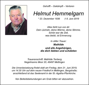 | † | Donnerstag, | 06. | 06. | 2019 |