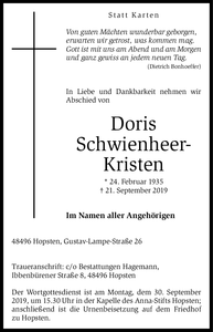 | † | Mittwoch, | 21. | 08. | 2019 |