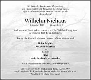 | † | Montag, | 22. | 04. | 2019 |
