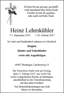 | † | Montag, | 13. | 02. | 2017 |