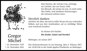 | † | Donnerstag, | 19. | 01. | 2017 |