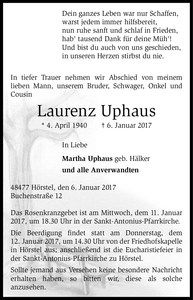 | † | Donnerstag, | 05. | 01. | 2017 |