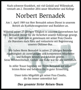 | † | Dienstag, | 06. | 12. | 2016 |