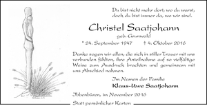 | † | Mittwoch, | 16. | 11. | 2016 |