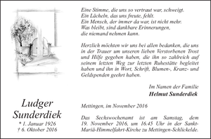 | † | Freitag, | 04. | 11. | 2016 |