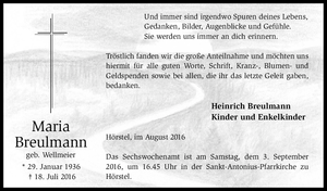 | † | Mittwoch, | 24. | 08. | 2016 |