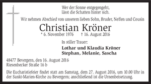 | † | Dienstag, | 16. | 08. | 2016 |