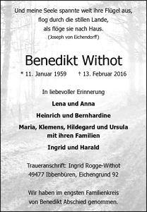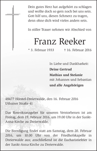 | † | Dienstag, | 16. | 02. | 2016 |