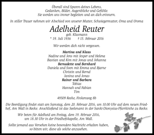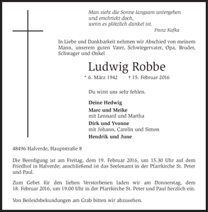 | † | Sonntag, | 14. | 02. | 2016 |