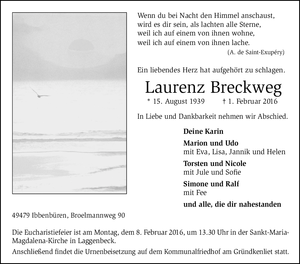 | † | Mittwoch, | 04. | 02. | 2015 |