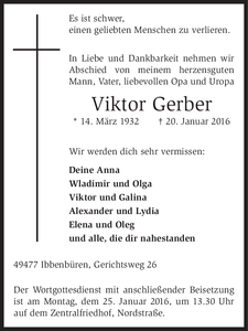 | † | Mittwoch, | 20. | 01. | 2016 |