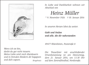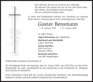 | † | Mittwoch, | 13. | 01. | 2016 |