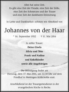 | † | Donnerstag, | 07. | 04. | 2016 |