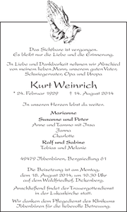 | † | Mittwoch, | 13. | 08. | 2014 |