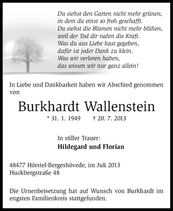 | † | Mittwoch, | 24. | 07. | 2013 |