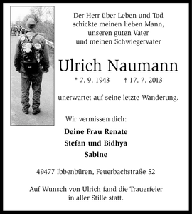 | † | Mittwoch, | 17. | 07. | 2013 |