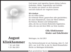 | † | Mittwoch, | 03. | 07. | 2013 |