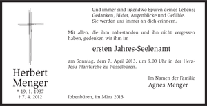 | † | Samstag, | 07. | 04. | 2012 |