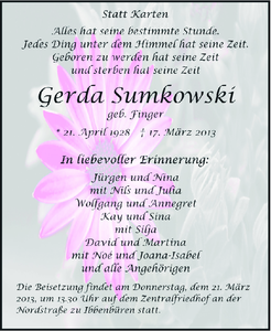 | † | Mittwoch, | 13. | 03. | 2013 |
