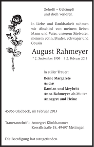 | † | Mittwoch, | 06. | 02. | 2013 |
