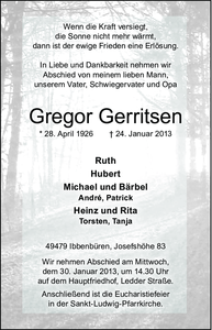 | † | Donnerstag, | 24. | 01. | 2013 |