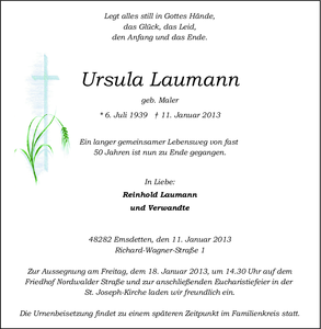 | † | Sonntag, | 13. | 01. | 2013 |
