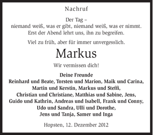 | † | Dienstag, | 04. | 12. | 2012 |
