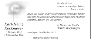 | † | Mittwoch, | 05. | 09. | 2012 |