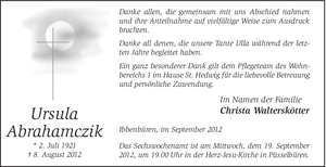| † | Donnerstag, | 06. | 09. | 2012 |