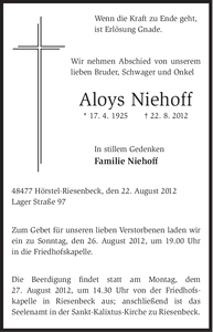 | † | Mittwoch, | 22. | 08. | 2012 |