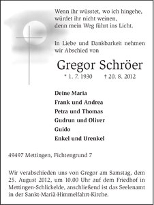 | † | Mittwoch, | 22. | 08. | 2012 |