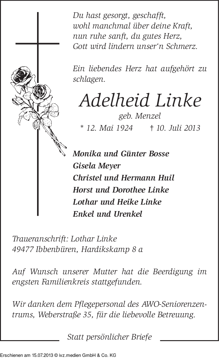 Anzeige vom 15.07.2013
