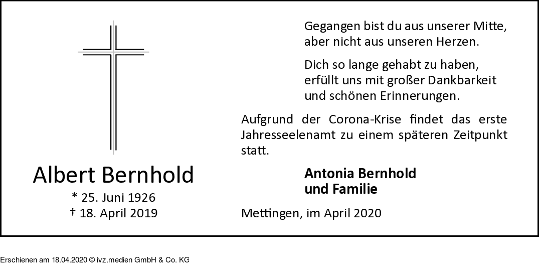 Anzeige vom 18.04.2020