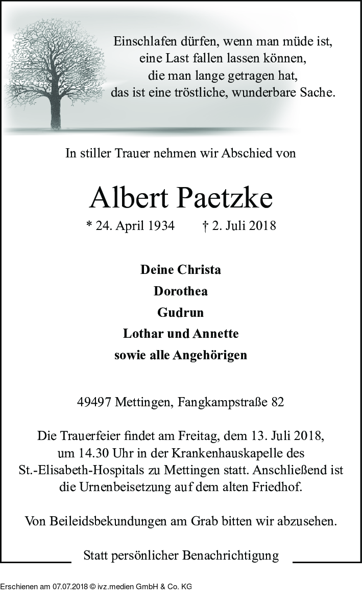 Anzeige vom 07.07.2018