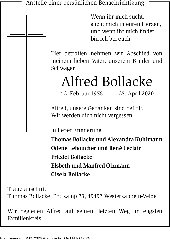 Anzeige vom 01.05.2020