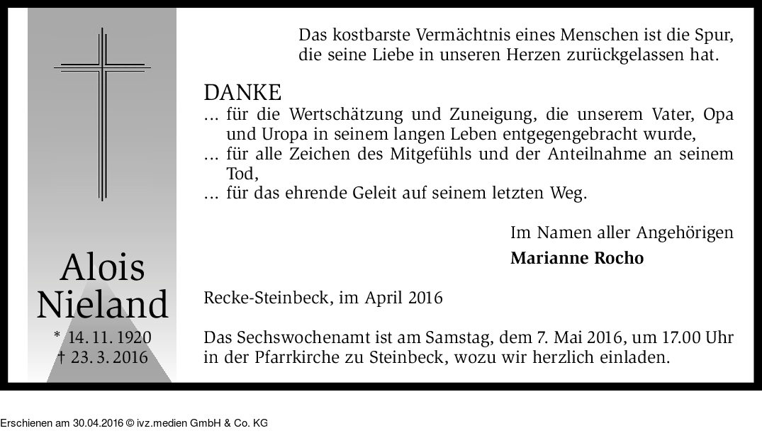 Anzeige vom 30.04.2016