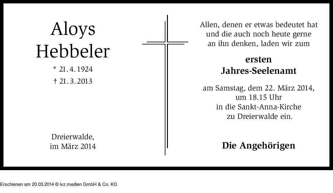 Anzeige vom 20.03.2014
