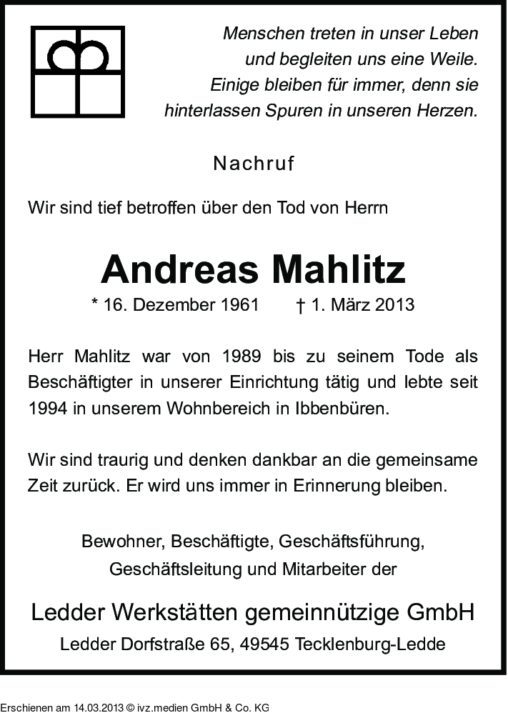 Anzeige vom 14.03.2013