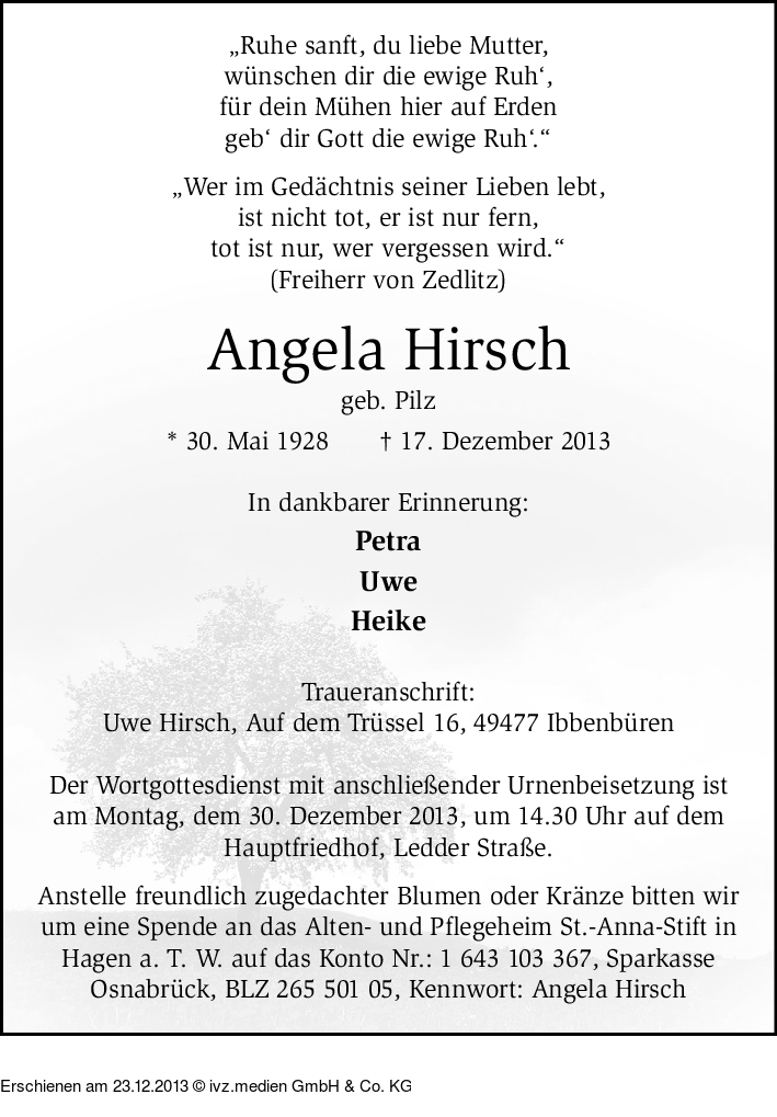 Anzeige vom 23.12.2013