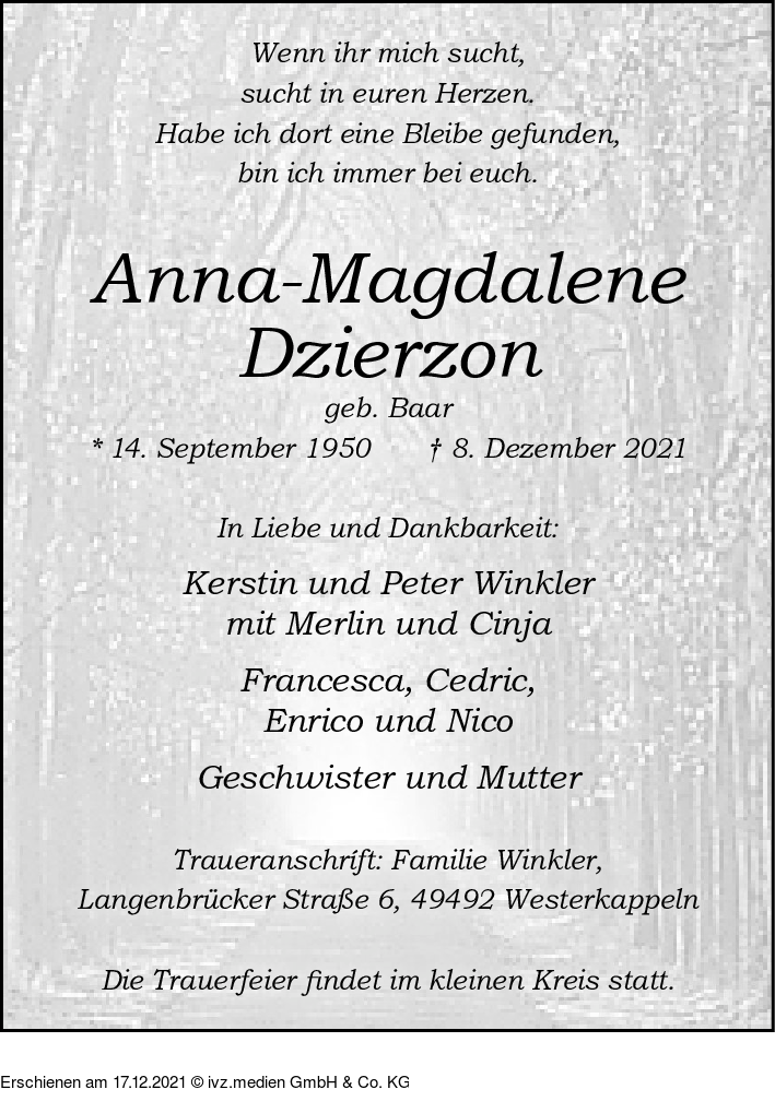 IVZ-Trauer | Anna-Magdalene Dzierzon