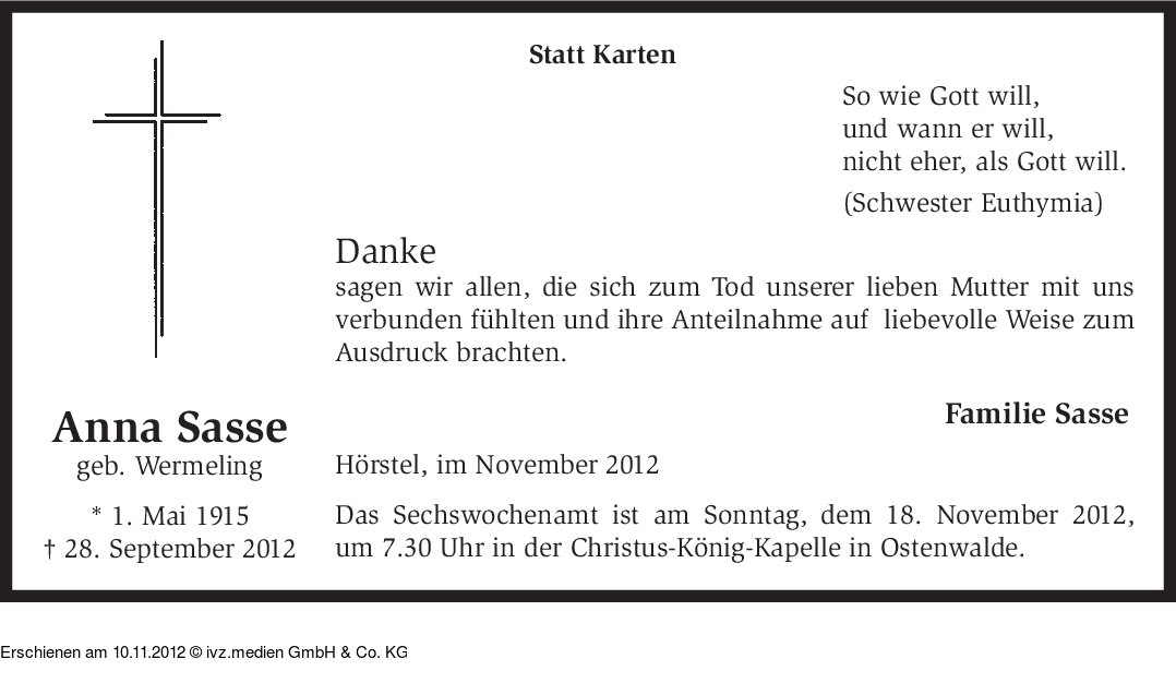 Anzeige vom 10.11.2012