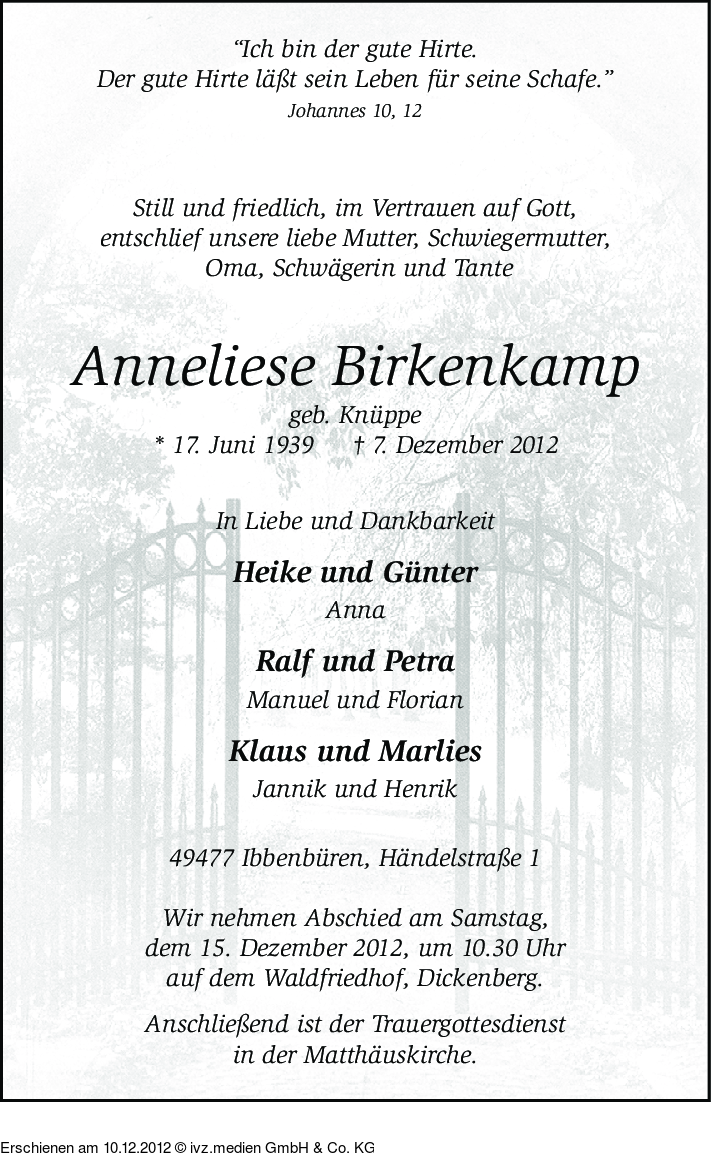 IVZ-Trauer | Anneliese Birkenkamp
