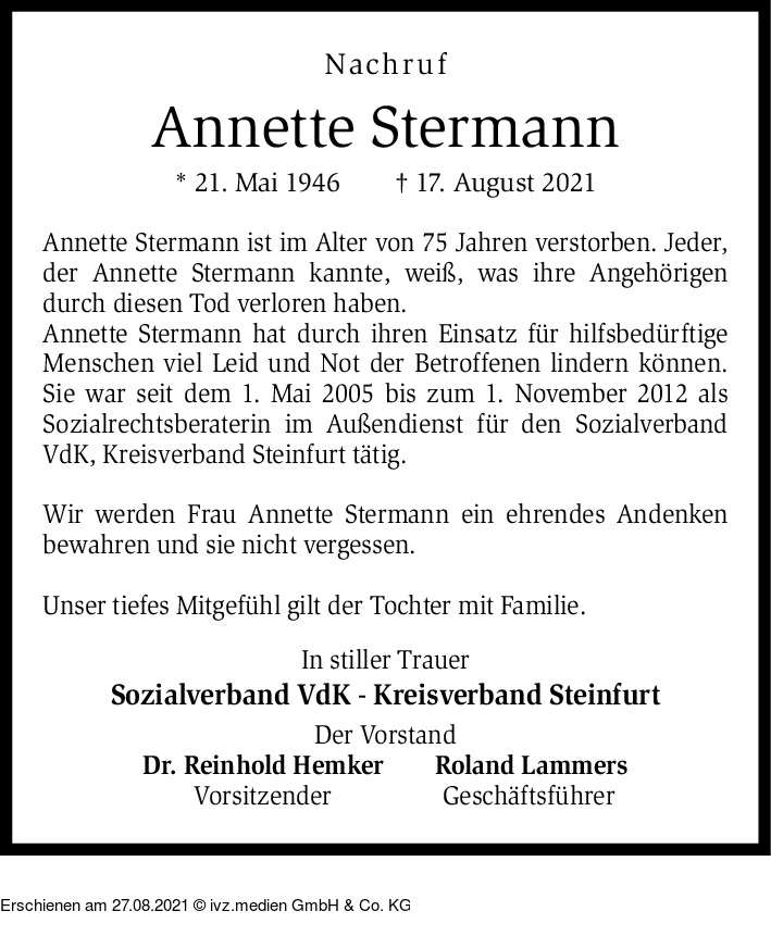 Anzeige vom 27.08.2021