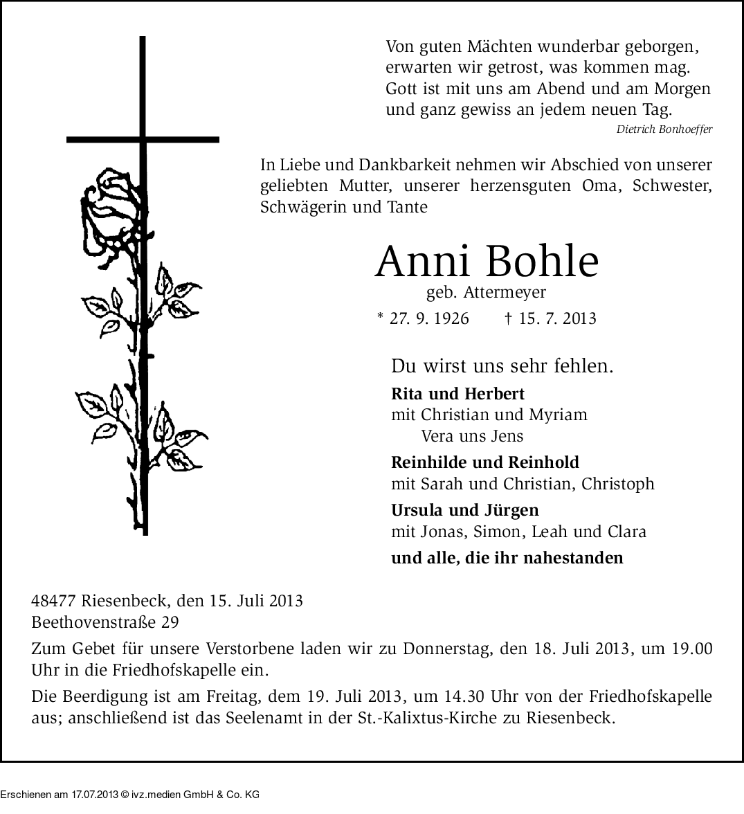 IVZ-Trauer | Anni Bohle