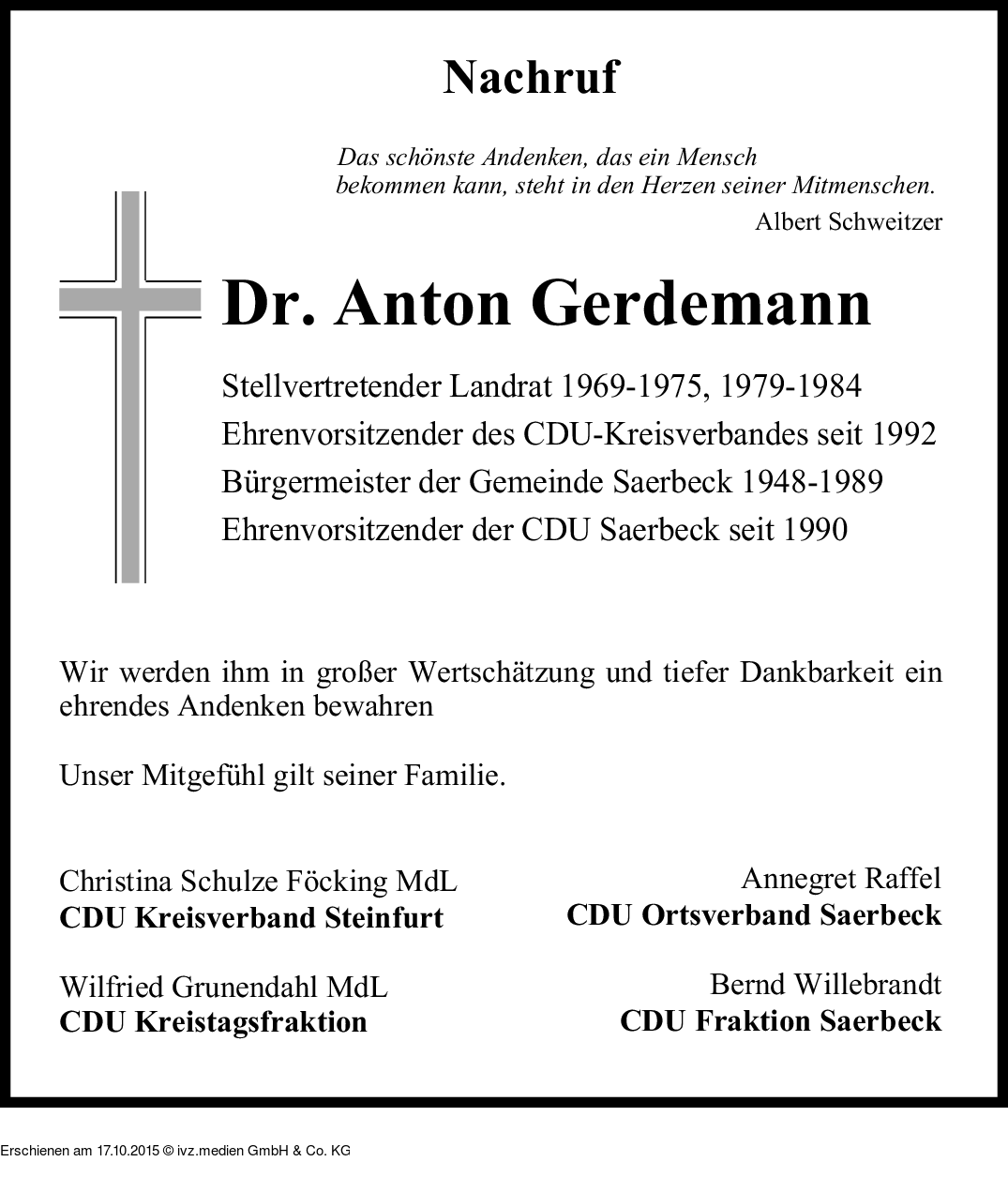 Anzeige vom 17.10.2015