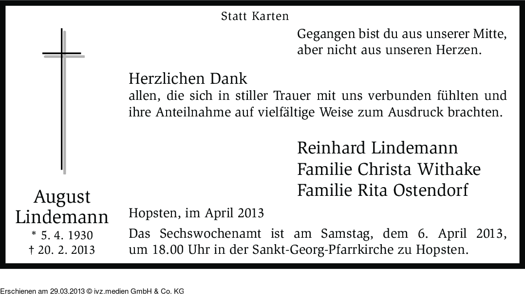 Anzeige vom 29.03.2013
